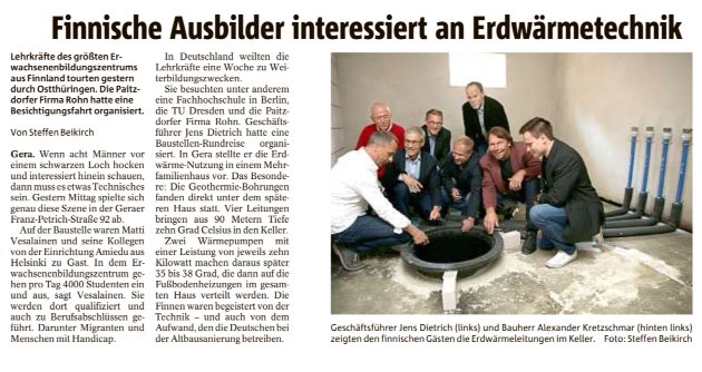 Finnische Delegation auf Studienreise 13 Februar 2017 Finnische Delegation auf Studienreise informiert sich über Geothermie. siehe Details