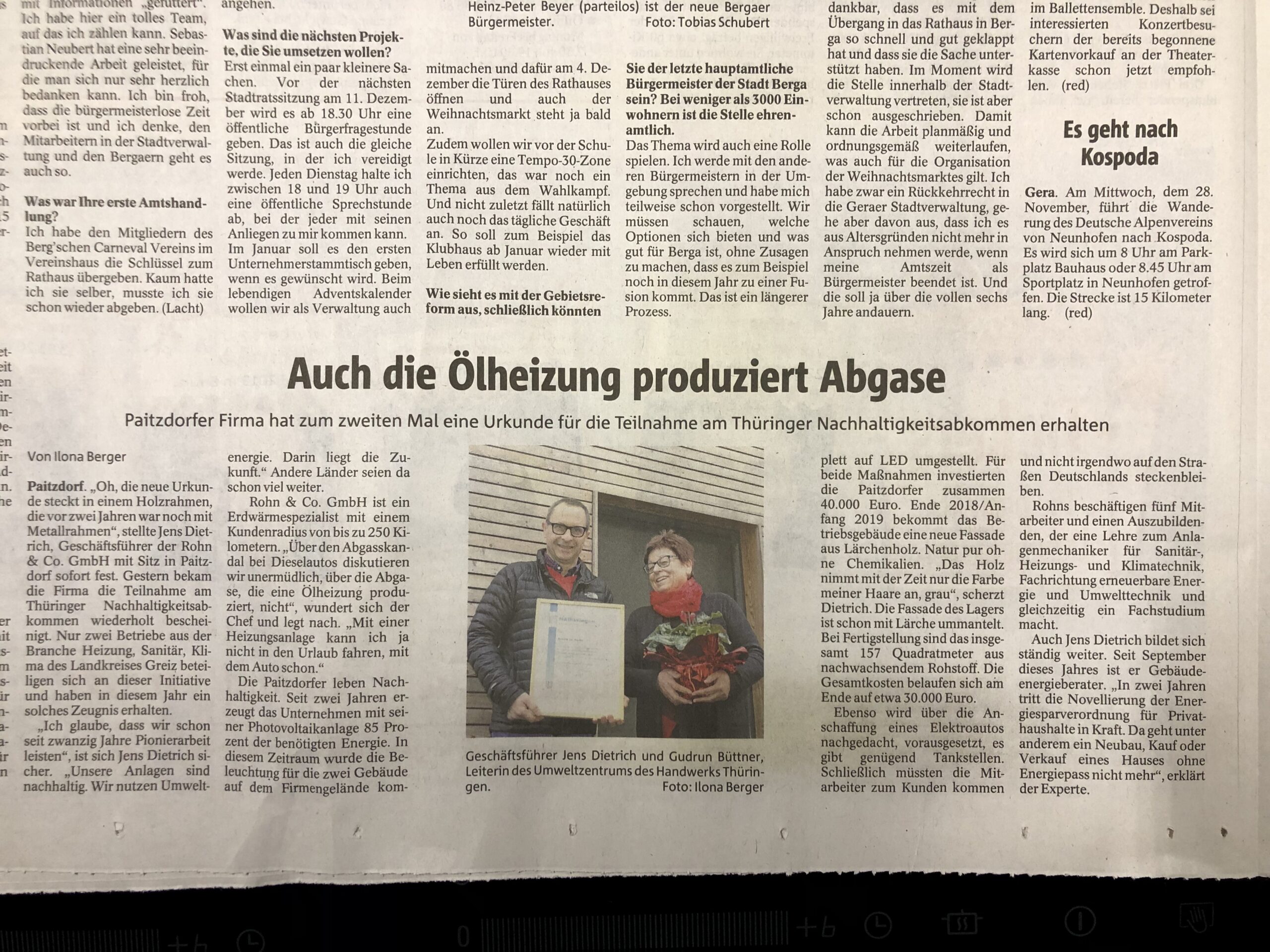 Gestern am 26.11.2018 bekammen wir die nun mittlerweile zweite Urkunde für die erfolgreiche Teilnahme am Nachhaltigkeitsabkommen in Thüringen. Wir wollen gern weiter Vorreiter sein.
