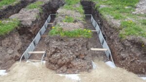 Bei diesem Wohnhaus in 99880 Schwarzhausen wurde die Abteufung von Erdwärmesonden von der Behörde untersagt. Auf nur 100 Quadratmetern hat der Erdwärmespezialist diesen Erdwärme-Vertikalabsorber in die Erde eingebracht – der Bauherr entschied sich für diese effiziente Variante der Erdwärme-Nutzung. Eine echte Alternative!