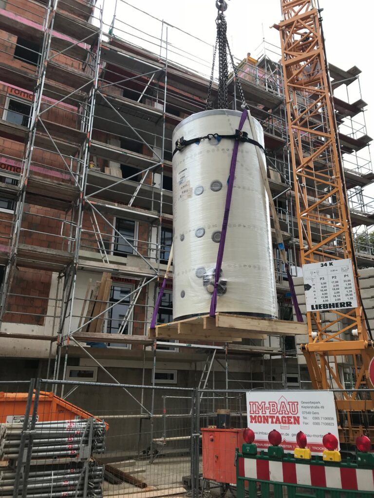 Zwei OCHSNER Luft/Wasser-Wärmepumpen mit Heizleistung von je 25 kW beheizen demnächst den Neubau in der Uferstraße mit 1600 m² Fußbodenheizung....